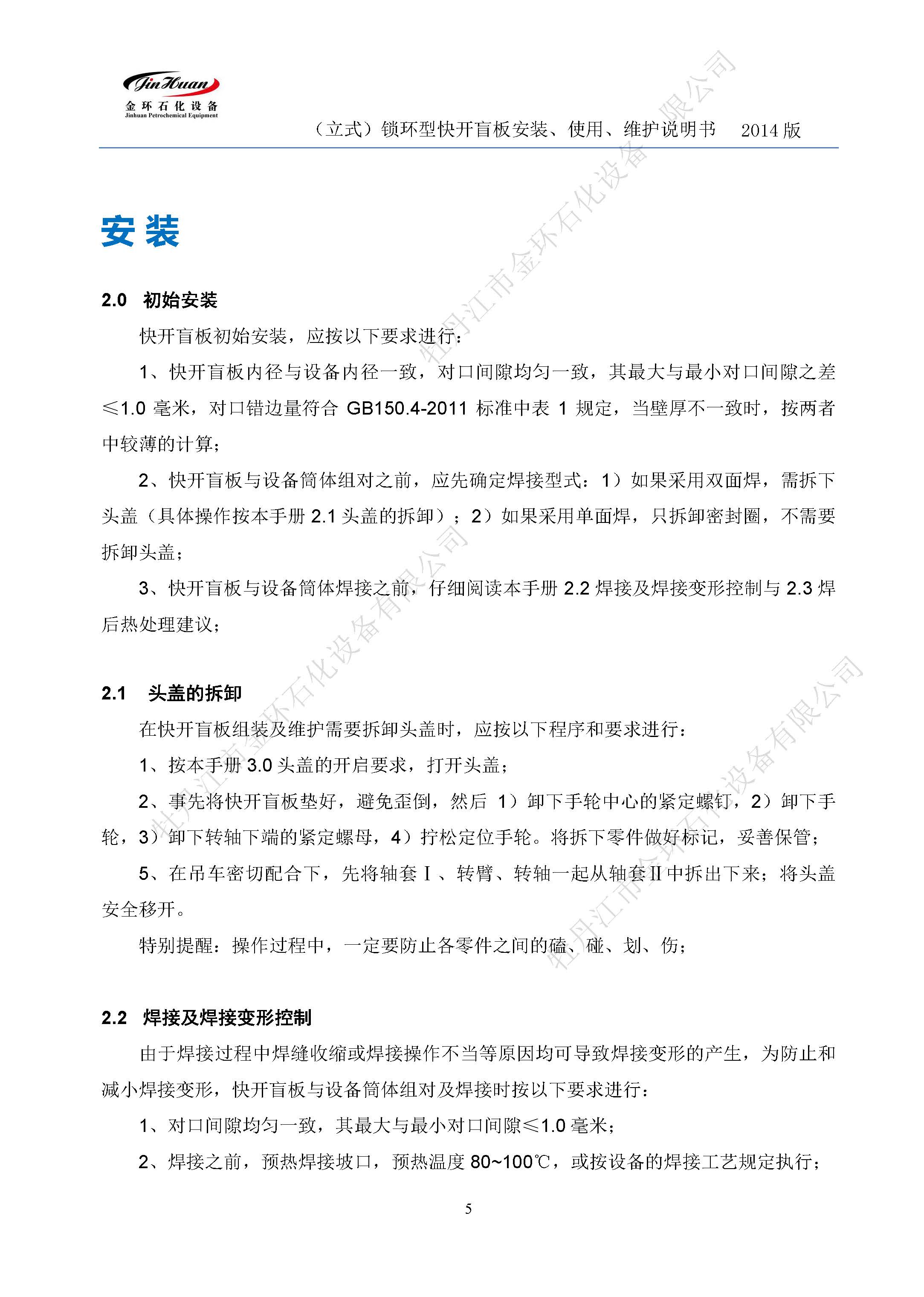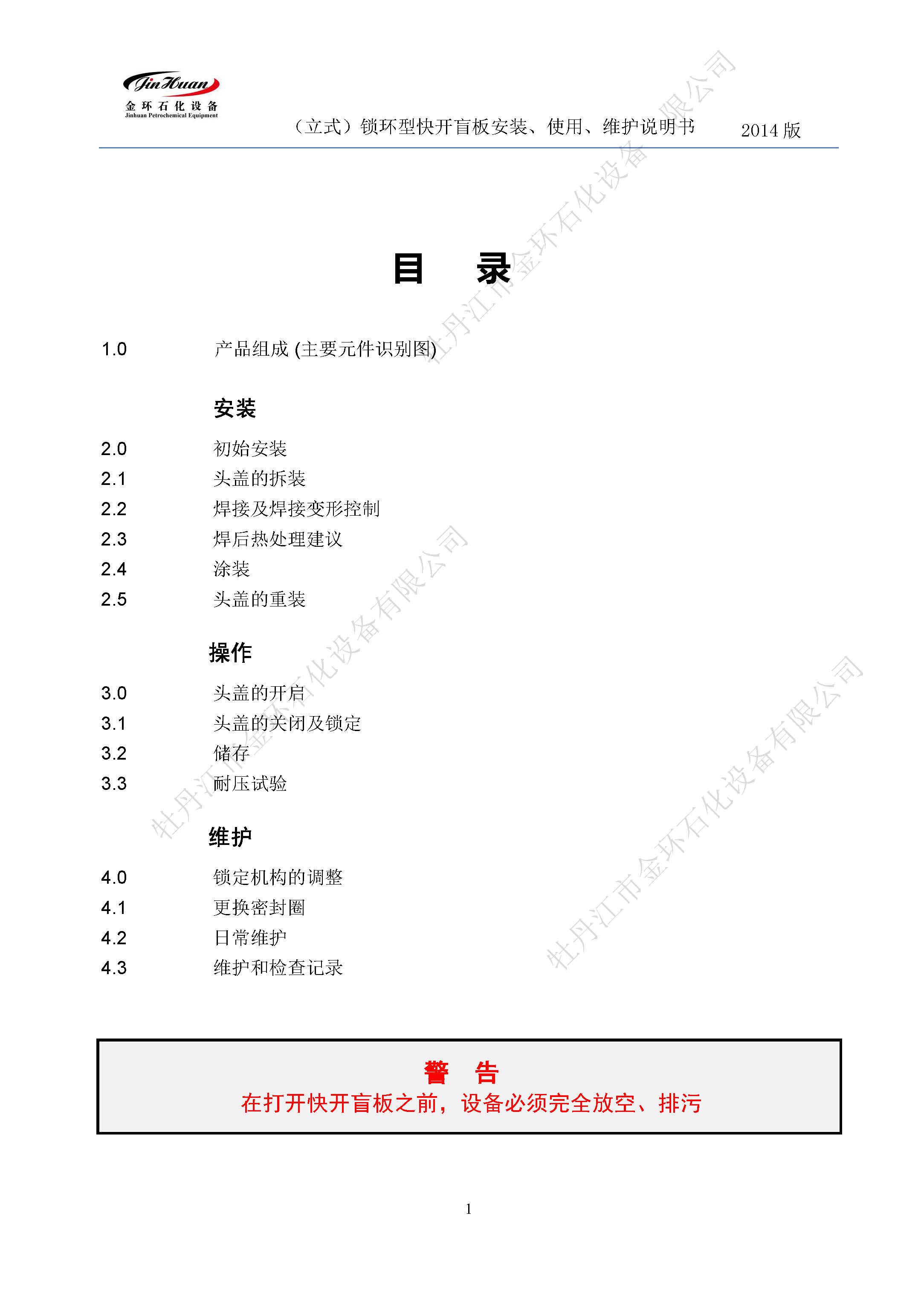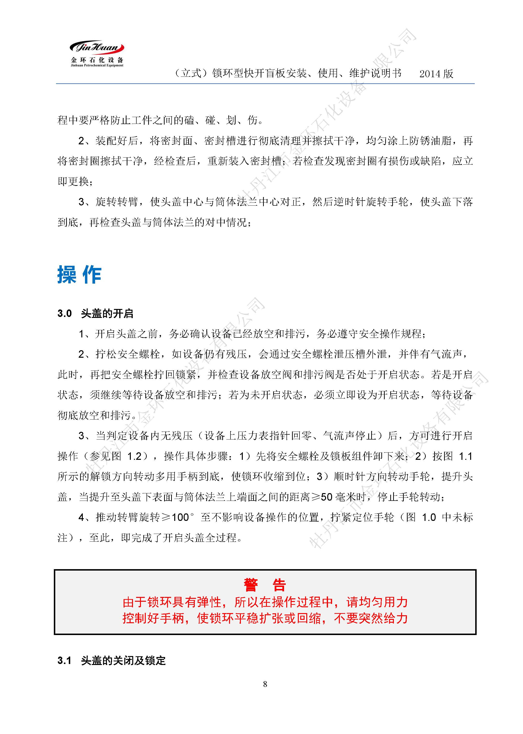鎖環(huán)立式快開(kāi)盲板說(shuō)明書(shū)